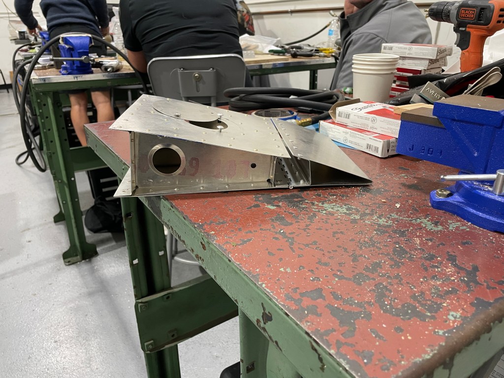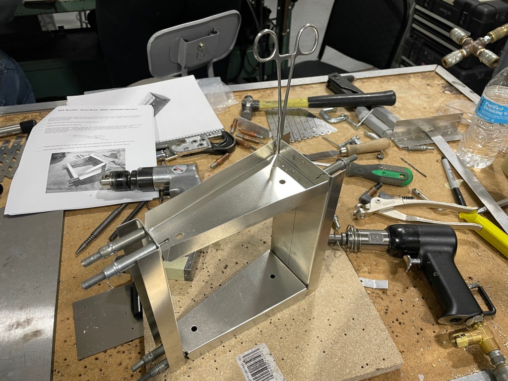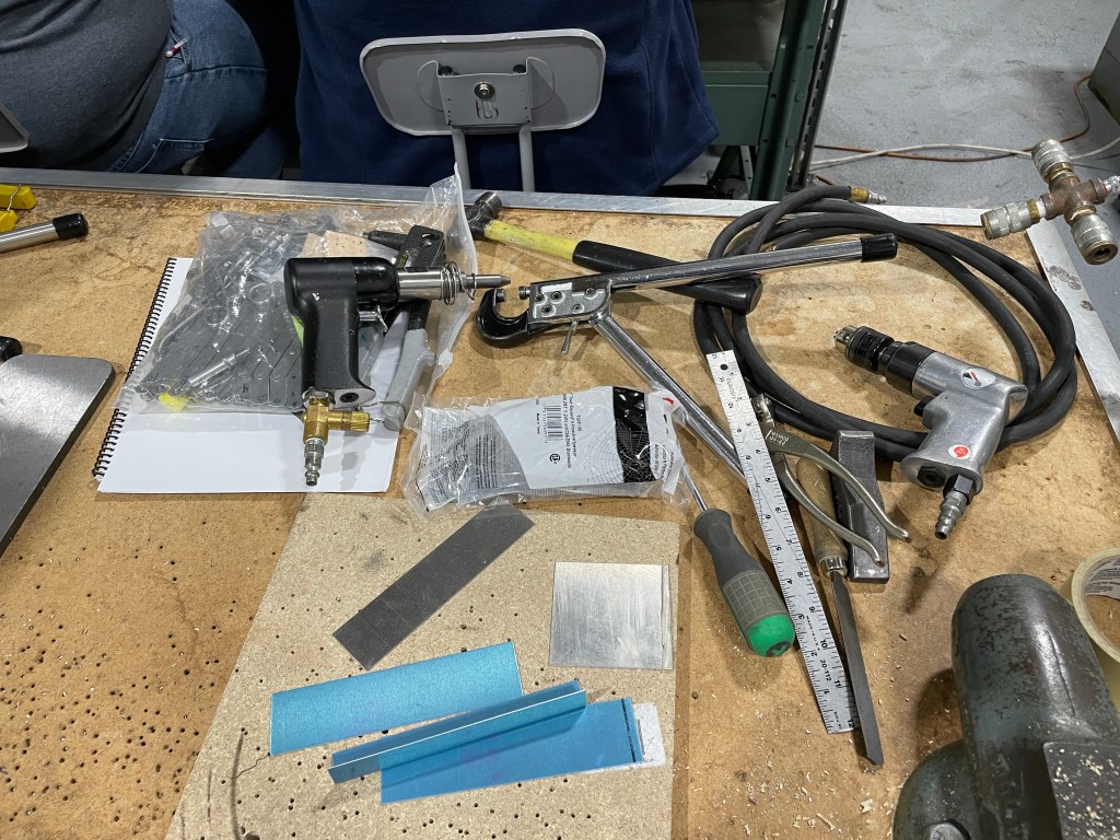 Each participant had their own workstation, fully equipped with tools and materials. It was like the ultimate grown-up version of arts and crafts, except instead of glitter and glue, we had riveting guns and bucking bars.