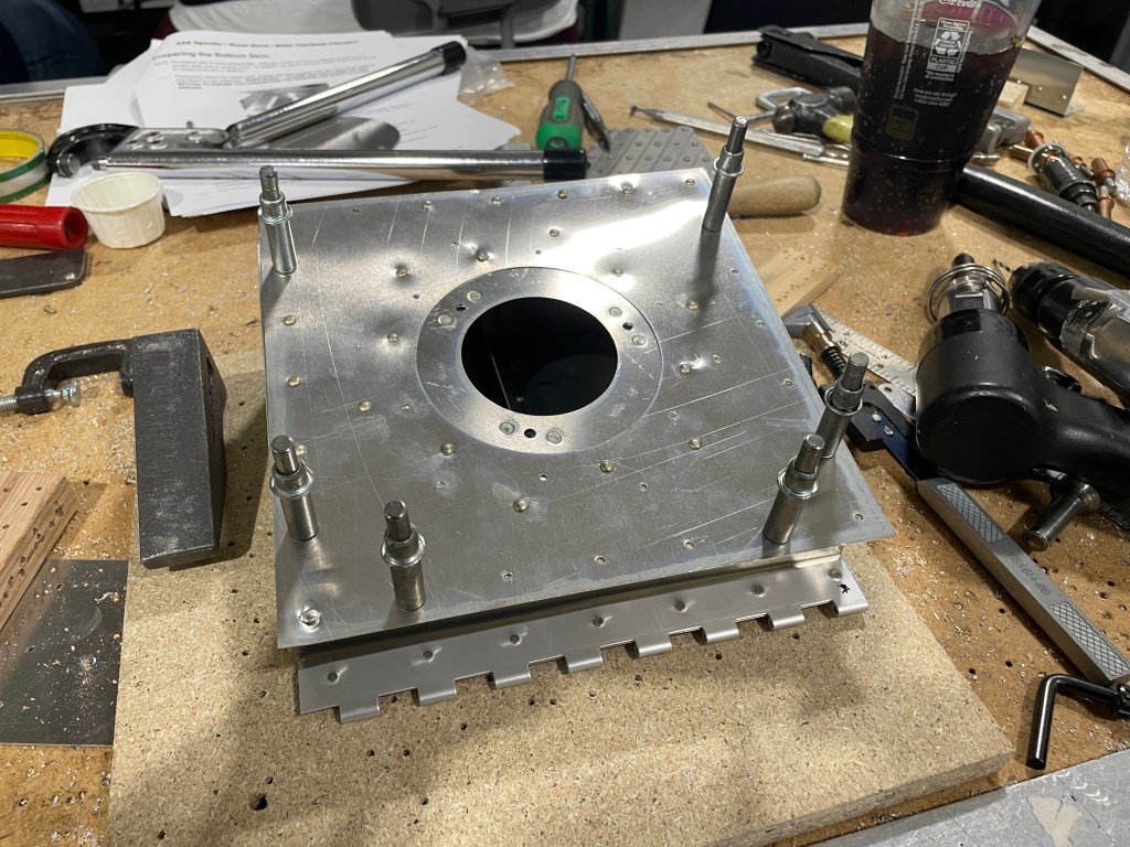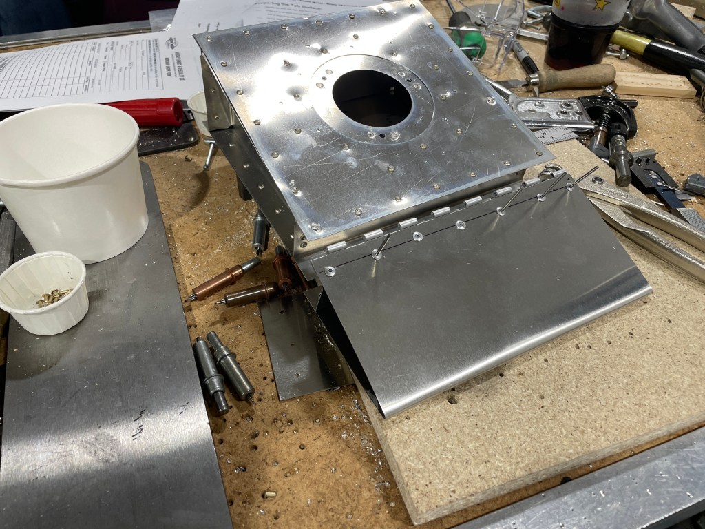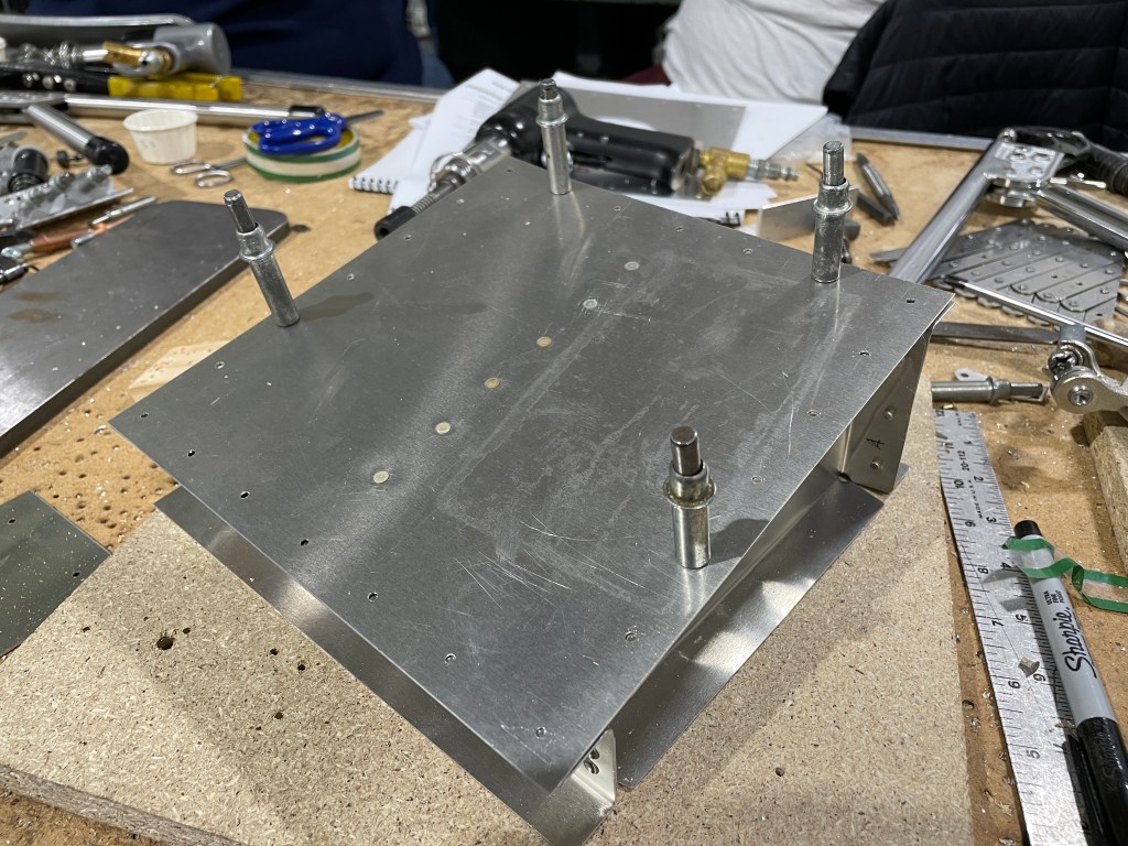 Mark started us off with a comprehensive presentation on the fundamentals of working with sheet metal. He covered everything from tool selection and part preparation to the nuances of drilling, hole dressing, and assembly techniques. We learned about different types of fasteners, dimpling, countersinking, and the art of using pop rivets. When he demonstrated the use of a riveting gun and bucking bars, it looked almost too easy—spoiler: it wasn’t.