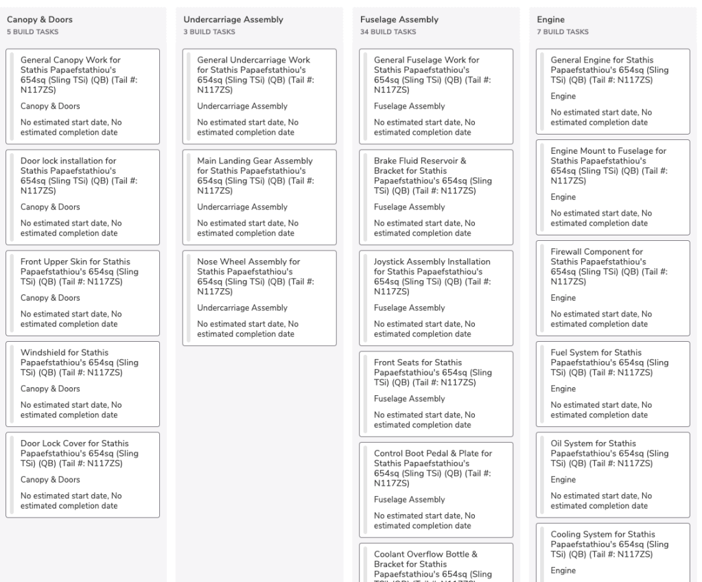 - A parts tracker with the order and delivery status for every nut, bolt, and major assembly