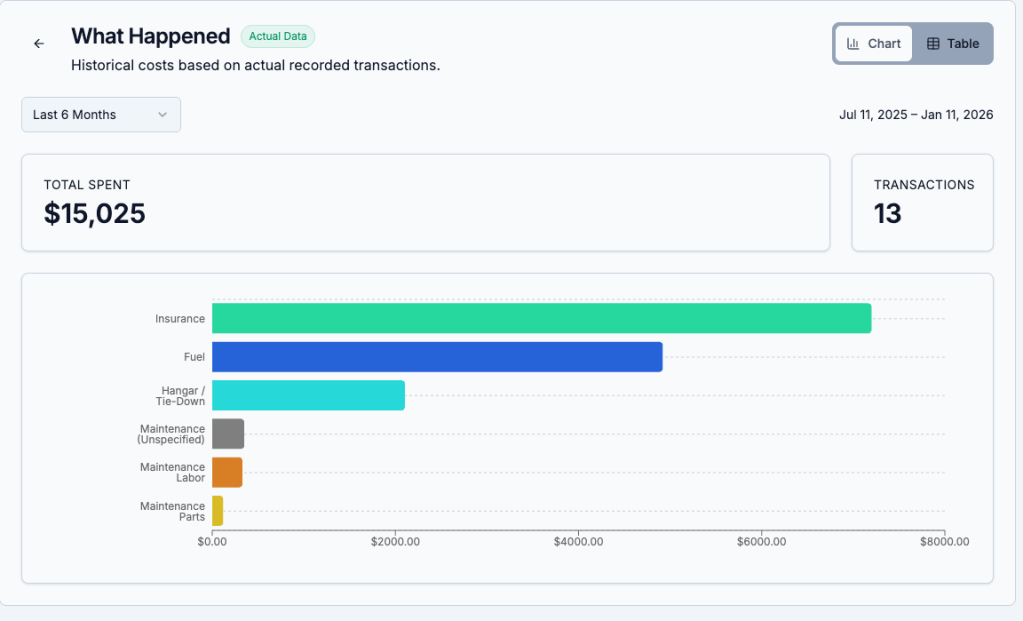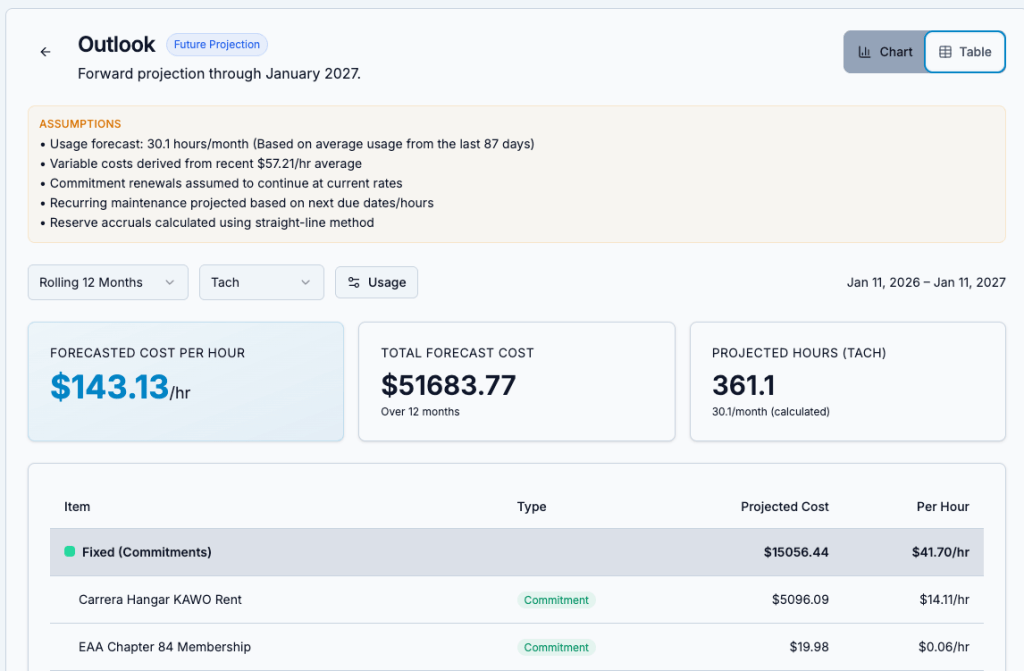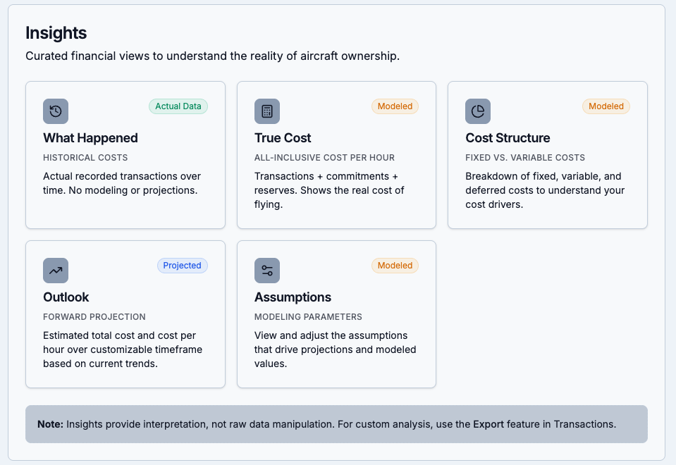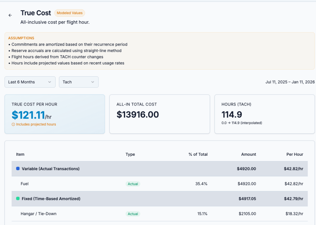 But by connecting financial reality directly to aircraft activity, using the same philosophy that guided maintenance tracking from day one: structured records, minimal duplication, and automation where it actually helps.