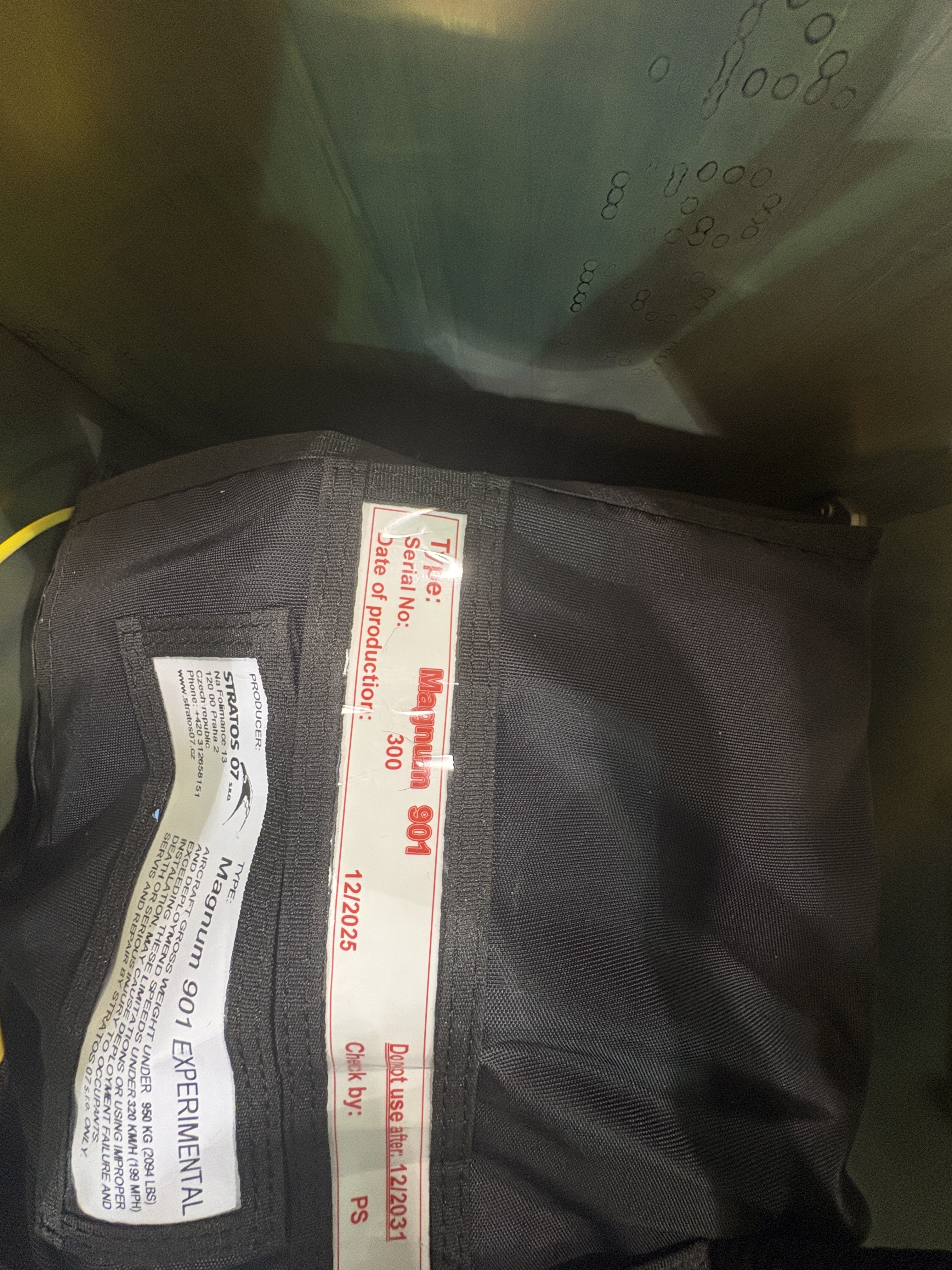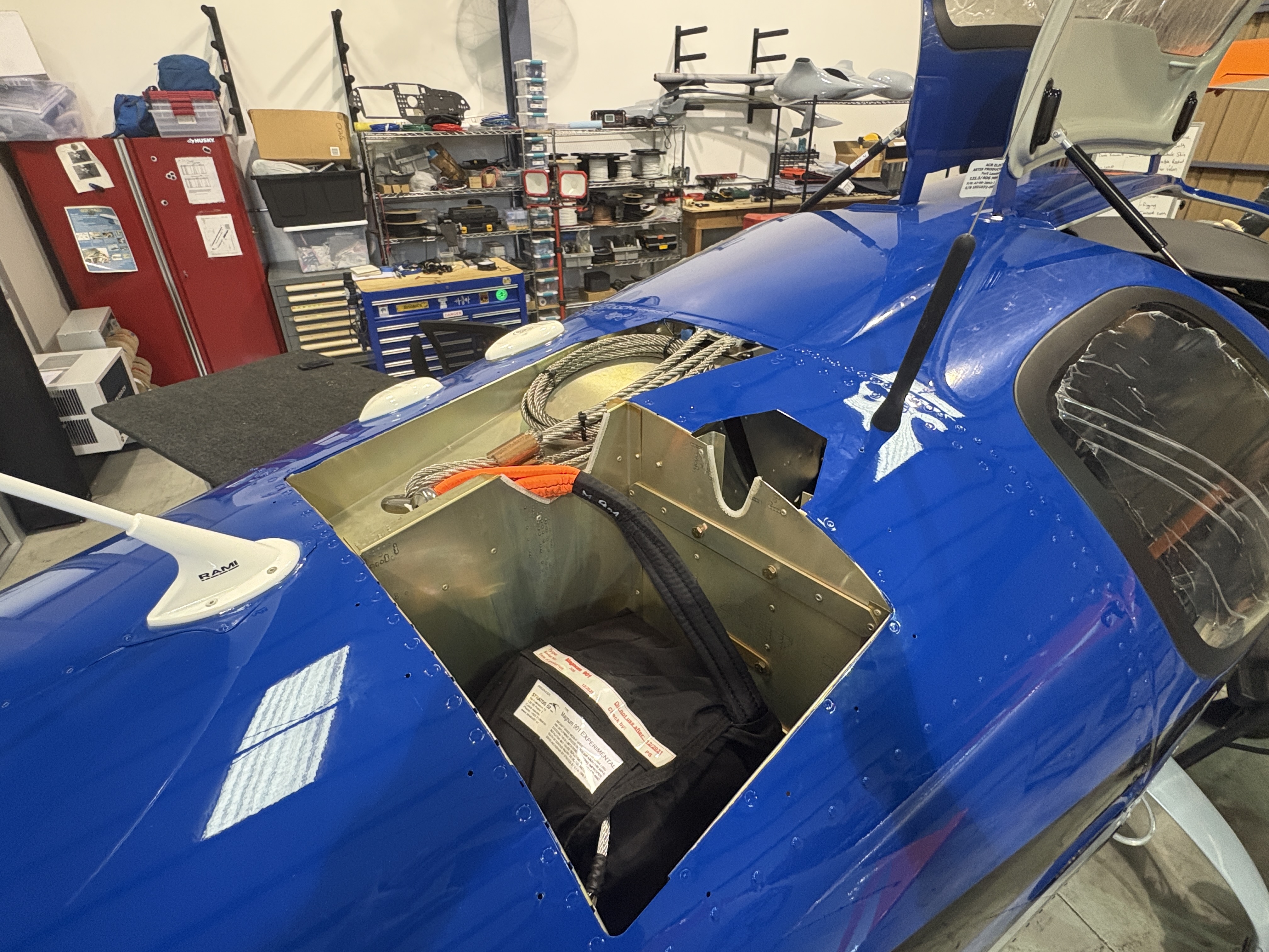 The parachute system — the Stratus Magnum 901 — is installed in the hatch area. As discussed in my earlier post about the decision to include it, the rocket and final fuselage skin installation occur toward the end for safety reasons. It’s one of those systems you hope never to think about again, but knowing it’s there changes your risk calculus in meaningful ways.