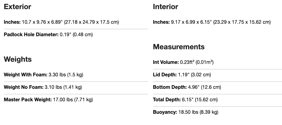 Pelican 1300 Specs